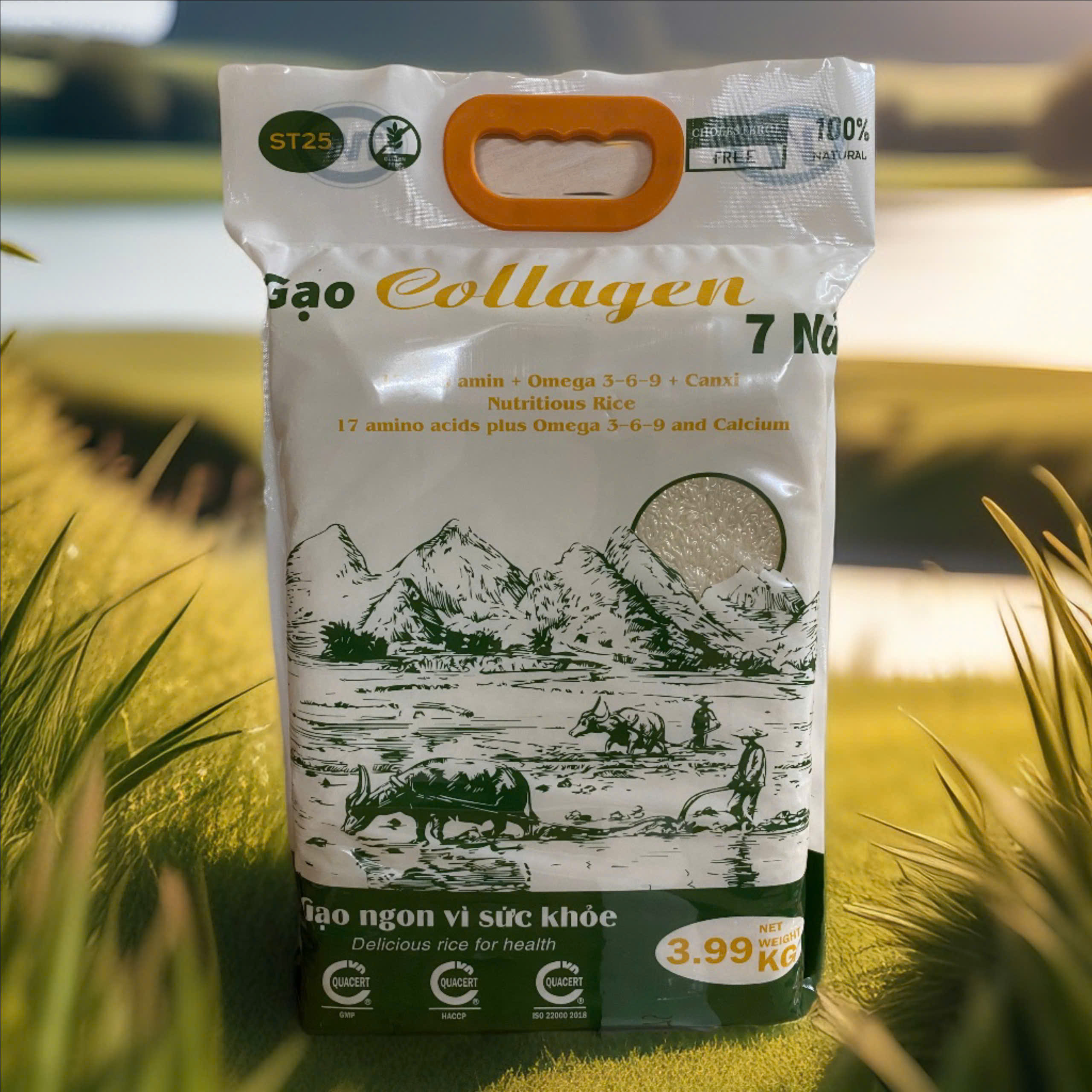 Gạo ST25 Collagen 7 Núi không chỉ là gạo, mà còn là một siêu phẩm dinh dưỡng, kết hợp hoàn hảo giữa hương vị thơm ngon đặc trưng của gạo ST25 và những dưỡng chất quý giá từ thiên nhiên.